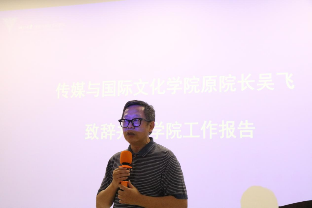 接着,韦路院长致辞并作出题为《以人为本,交叉取胜——建设世界一流、中国特色、浙大风格的传媒学院》的工作报告。首先,韦路院长感谢各位校友一直以来对于学院工作的支持,介绍了学院的基本情况,强调以“创新驱动,以人为本,交叉取胜,主流引领”十六字方针作为学院发展的基本思路。接着,他从使命愿景、党建引领、学科建设、立德树人、人才引育、科学研究、社会服务、国际合作等八个方面,介绍了近年来学院的建设成果,期待广大校友共襄教育事业,助力学院发展。
