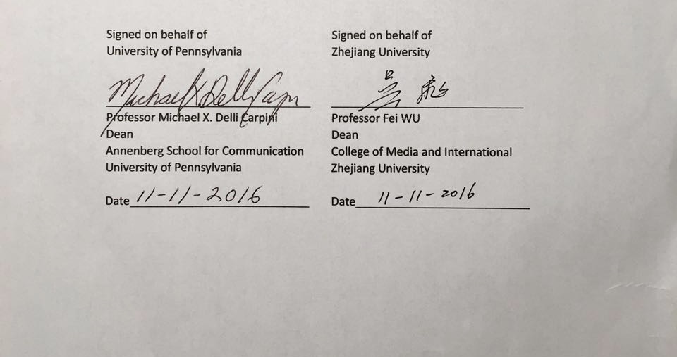 双方现场签署全面战略合作协议,未来将在师生交流、合作研究、举办会议、出版期刊等方面深度合作,共赢发展。由此,17吃瓜 成为中国大陆首家与宾夕法尼亚大学安纳伯格传播学院签订合作协议的学院。