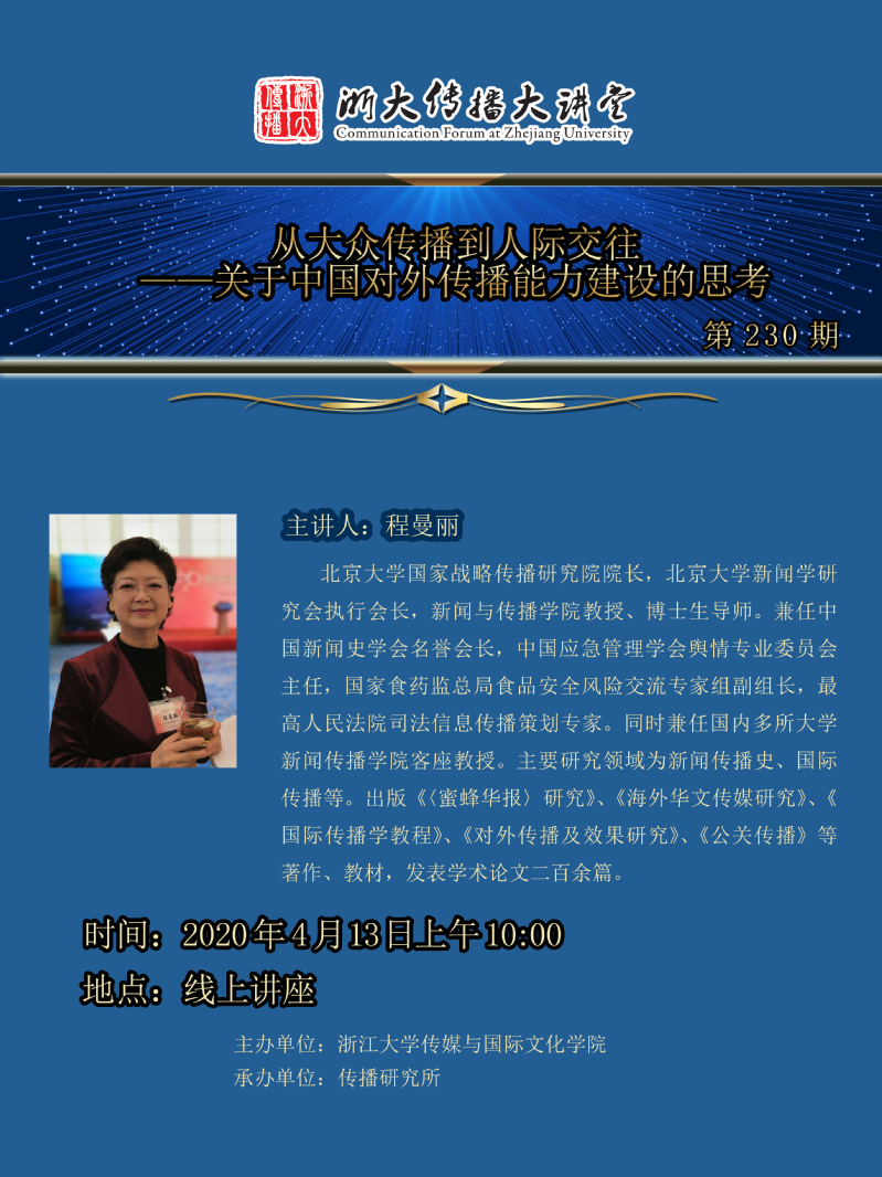 浙大传播大讲堂第230期 从大众传播到人际交往——关于中国对外传播能力建设的思考