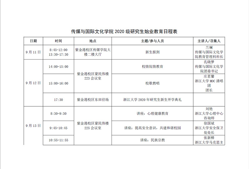 附件:17吃瓜 2020级研究生始业教育日程表.pdf