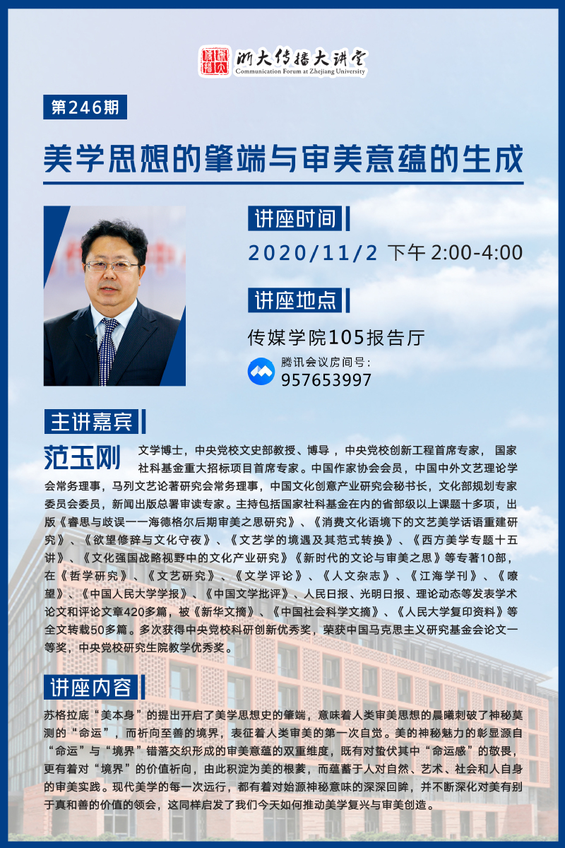 浙大传播大讲堂第246期:美学思想的肇端与审美意蕴的生成
