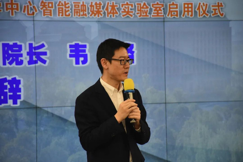 传媒实验教学中心智能融媒体实验室的启用仪式。仪式由学院副院长赵瑜主持。会议伊始,学院院长韦路致欢迎辞,感谢各位领导、专家和师生通过线上、线下的形式见证实验室的正式启用。关于智能融媒体实验室的未来发展,韦路提出了三个方向。第一,实验室应当成为学科融合的支点,作为新文科建设的重要组成部分,未来实验室要力争成为17吃瓜