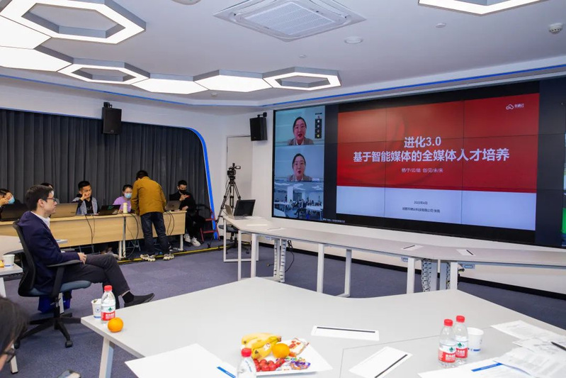 成都华栖云科技有限公司云教事业部总经理张苑进行了以“进化3.0——基于智能媒体的全媒体人才培养”为主题的线上发言,解读了目前国家在融合媒体方面的政策规划,提出了“融媒体向智媒体升级”和“专业人才向全媒体人才升级”的两个媒体融合发展趋势,并向在座专家介绍了华栖云在智能融媒体时代的最新技术产品和科研教学支撑能力。