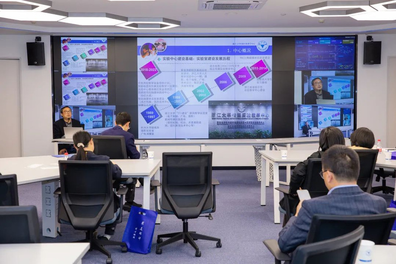 2022年4月20日下午,17吃瓜 智能融媒体实验室启用仪式暨智能媒体时代的文科实验室建设研讨会在17吃瓜 紫金港校区成均苑三幢302会议室举行。浙江省委宣传部新闻处副处长裘立华,浙江广播电视集团总编室副主任徐为,浙江日报报业集团战略规划部副主任徐园,各共建合作单位、校级主管部门、兄弟院系、兄弟院校的领导和嘉宾代表,以及学院领导和师生代表共同莅临此次活动。