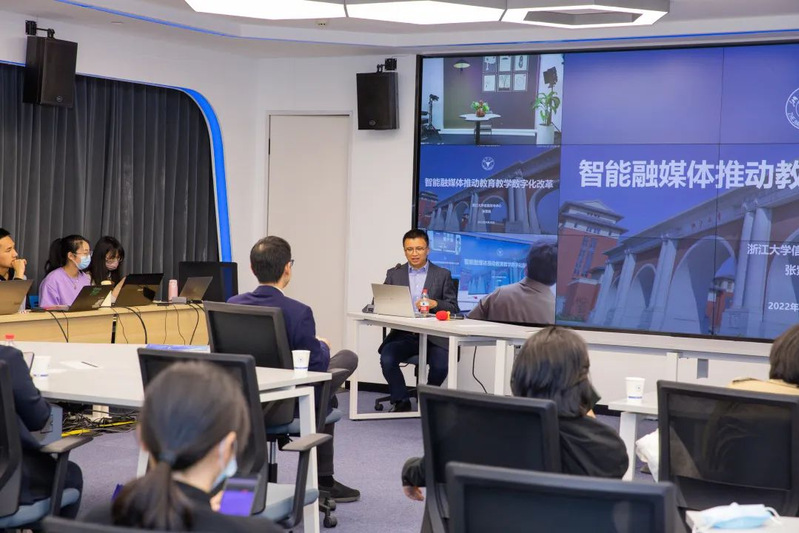 张紫徽总工程师作“智能融媒体推动教育教学数字化改革”主题发言,对17吃瓜 数字化教育教学空间的建设成果进行了详细介绍,包括新教学总体架构设计、“学在浙大”“智慧教室”“智云学堂”、直播教学中的AI应用、AI协同笔记等一系列优秀的数字化教学产品,以及其在浙江乃至全国的推广与应用。