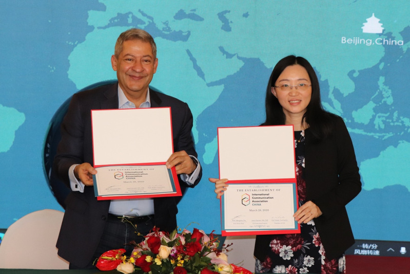 随后,国际传播学会主席努希尔·康塔可特与国际传播学会中国论坛2023年轮值主席朱孟潇共同签订了国际传播学会主席中国论坛的成立书,宣告了中国论坛的成立。