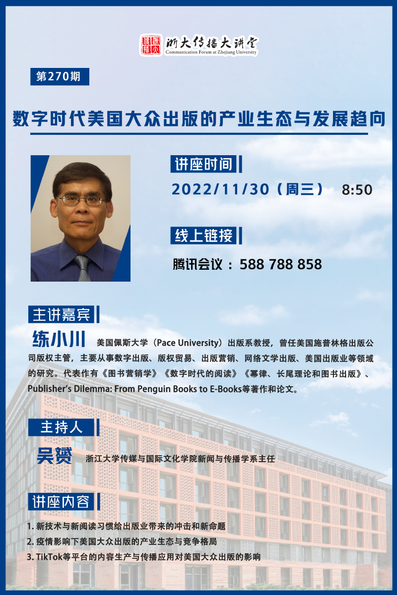浙大传播大讲堂第270期:数字时代美国大众出版的产业生态与发展趋向
