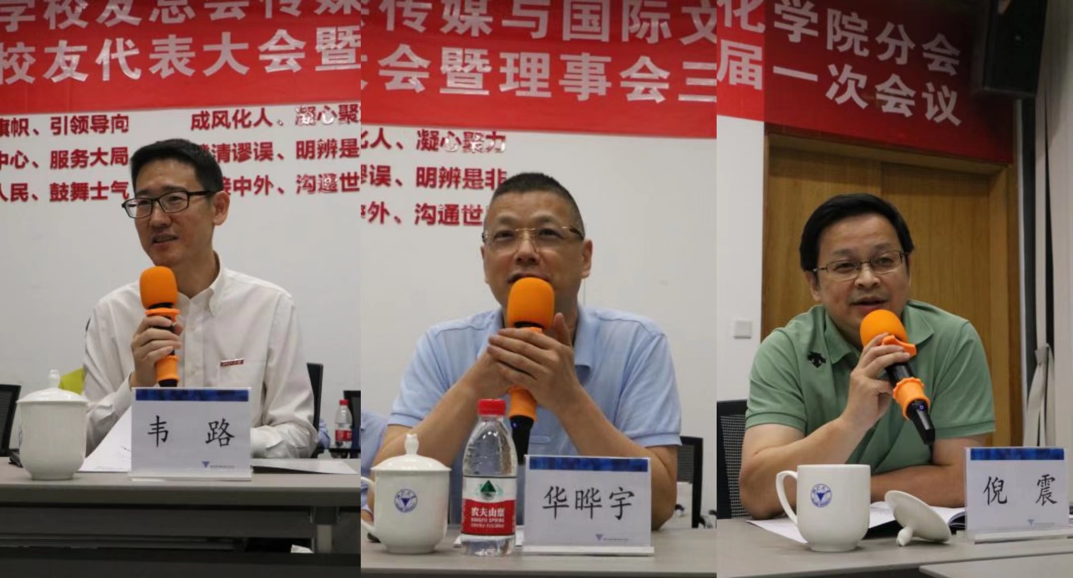 新任理事会会长韦路对上一届理事会作出的贡献表示了敬意,对全体校友对学院发展和学科建设工作的关心和支持表示了感谢。他表示,一定会传好接力棒,更好地服务广大校友。新任副会长华晔宇回忆了自己大学生活的往事,肯定了学院几十年来的发展成果,感谢母校的信任,表示一定会全力投入理事会的工作。新任副会长倪震则提出,要想办法增强老浙大校友们的归属感、认同感,给予他们更多的支持。新任副会长俞虹、胡宏伟、吴艳也以视频的形式表达了自己对学校学院的祝福,分享了他们对于传媒行业和教育事业的思考。