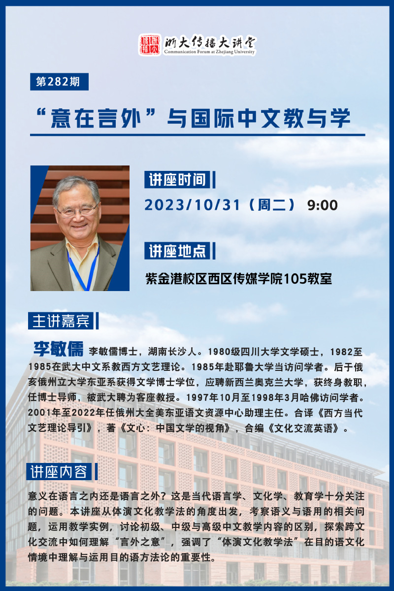 浙大传播大讲堂第282期 | “意在言外”与国际中文教与学
