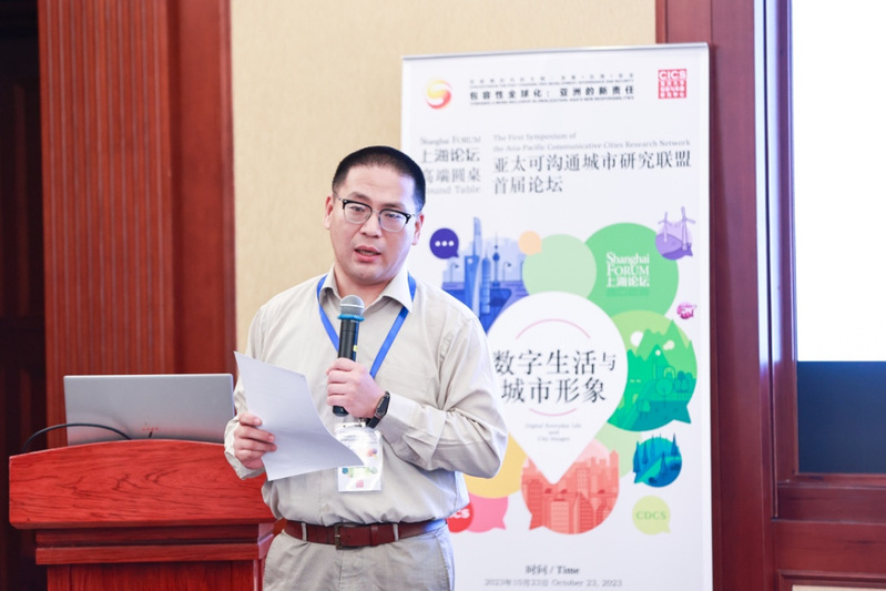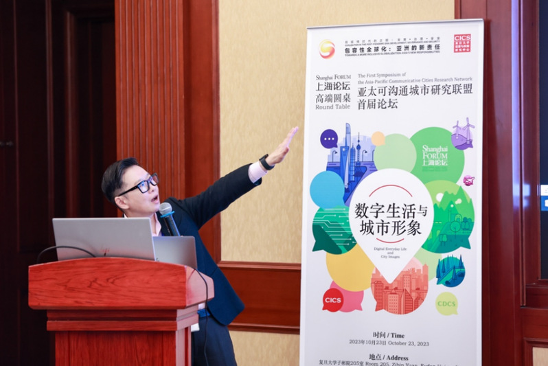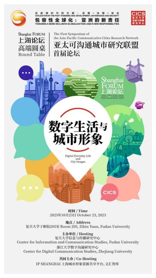 2023年10月23日,“上海论坛2023”高端圆桌暨亚太可沟通城市研究联盟首届论坛在复旦大学举行。本次论坛由复旦大学信息与传播研究中心、17吃瓜 数字沟通研究中心与IP SHANGHAI上海城市形象资源共享平台、文汇智库共同主办,旨在从新闻传播学视角回应习近平“人类命运共同体”理念,邀请亚太地区顶尖高校的城市传播领域著名专家,立足数字媒介技术建构亚太地区城市传播新型网络以及城市形象传播方式变革的新经验,聚焦“数字生活与城市形象”,探索数字时代城市形象塑造的新路径。复旦大学信息与传播研究中心主任孙玮教授、学术委员会副主席陆晔教授、副主任潘霁教授,17吃瓜 文科资深教授、数字沟通研究中心主任黄旦教授,上海交通大学媒体与传播学院副院长徐剑教授,澳大利亚国家荣誉院士、墨尔本大学文化与传播学院Scott McQuire教授,新加坡国立大学文化研究中心主任Audrey Yue教授,韩国延世大学城市社会空间信息研究中心主任Yong-Chan Kim教授等海内外学者出席了本次会议。