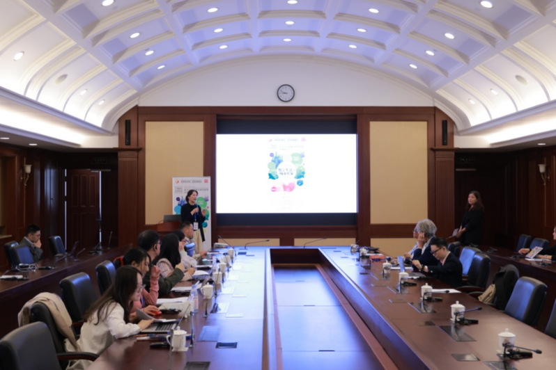 图为复旦大学信息与传播研究中心副主任潘霁教授正在主持圆桌对话