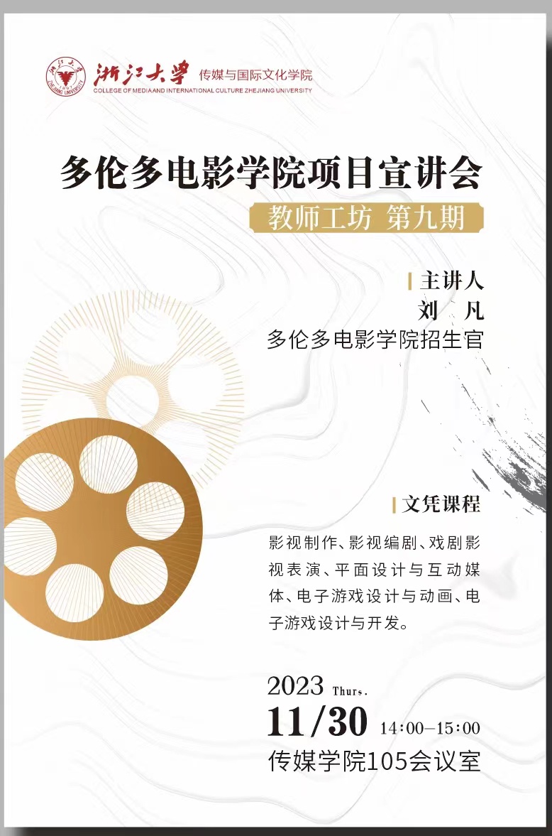讲座预告 | 多伦多电影学院项目宣讲