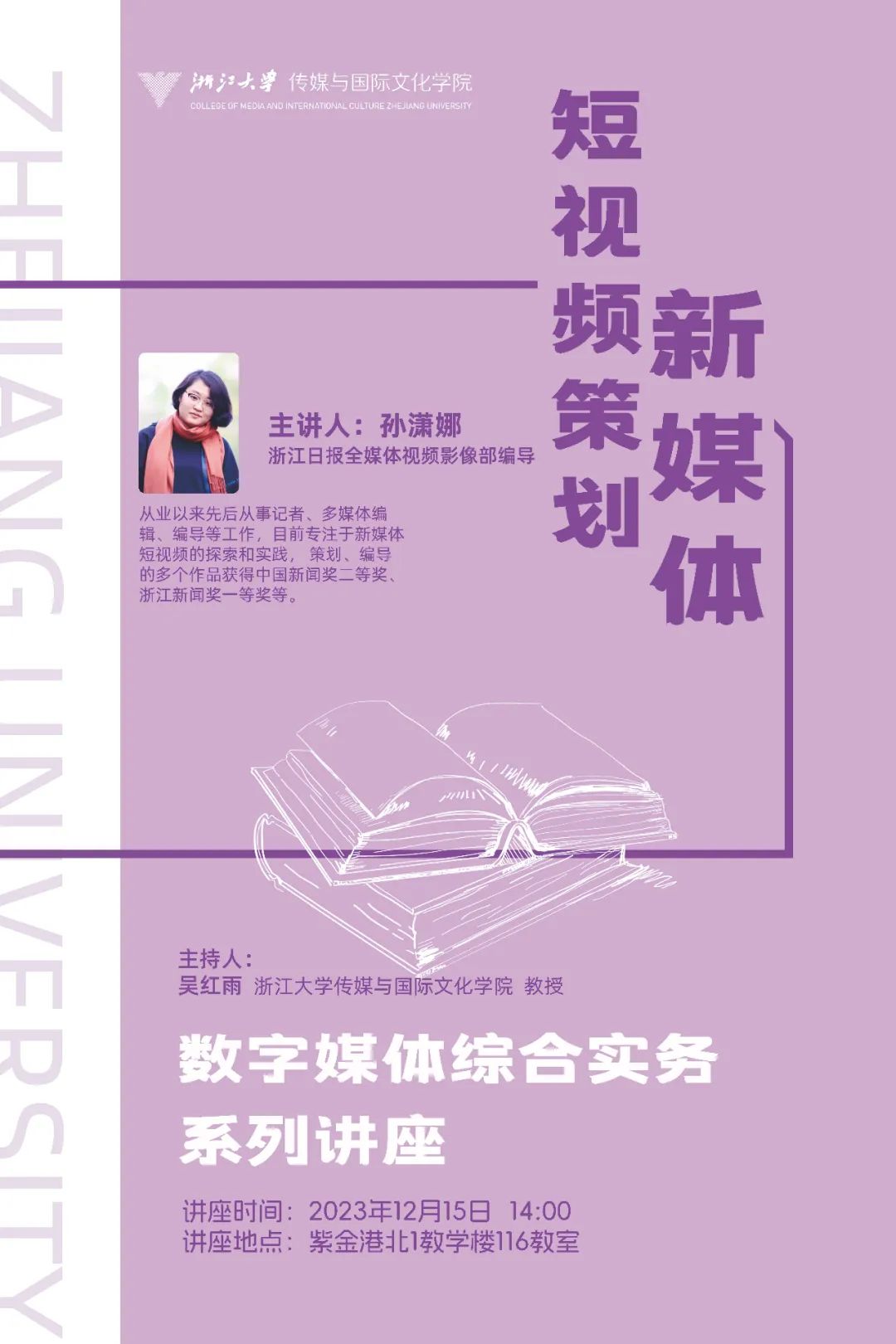 讲座预告 | “数字媒体综合实务”系列讲座:新媒体短视频策划