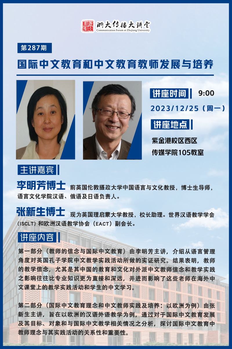 浙大传播大讲堂第287期|国际中文教育和中文教育教师发展与培养