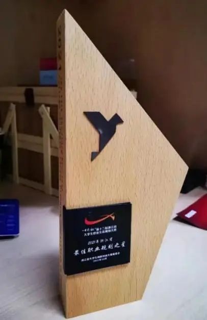 陈炜漫在职业生涯规划大赛上发表演讲 “最佳职业规划之星”奖杯 行己所行:凡是竭力投入,做到无问西东 坚定的志向、心底的热爱,这是陈炜漫前行的目标与动力。在奔赴未来的道路上,陈炜漫付出一份又一份的努力,留下一步又一步的印迹,脚踏实地、奋力向前。 在新闻专业的实践课堂中,陈炜漫挖掘过村庄拆建的困境,倾听过精神障碍患者的悲欢,记录过城市翻新浪潮下的失意理发匠,拍摄过为报刊亭屡次维权的豪爽大姐……她在见证人生百态的过程中锻炼专业技能、坚定新闻理想。 陈炜漫曾调查过一村庄只拆不建的困境,写就一篇万字调查性报道。这万字背后,是数以十倍计的准备和努力。清晨出发,深夜归校,几周内,陈炜漫和同伴一起走访了村内近百户人家。期间遇到过“为什么要调查这个?是不是想赶我们走?”等消极回应,但她并不气馁,而是一户接一户地走访、问询。采访当地村民、整理政策文件、翻阅专家论文……通过各种渠道搜集资料,陈炜漫和同伴积累起了一个数十万字的庞大资料库。 坚定所爱,全力以赴,陈炜漫的努力有目共睹,她在前行的道路上留下了一个又一个的脚印。在课业学习中,她的成绩优异,本科四年始终名列前茅;在创新创业中,她用心探索,获得了浙江省中国国际“互联网+”大学生创新创业大赛银奖等多个奖项;在专业实习中,她积极尝试、认真负责,采写了“暑期学校托管”“青少年亚文化”等重要新闻选题,被实习单位光明日报总社的老师评价为“一名卓越的新闻传播后备人才”;在学术科研中,她亦潜心钻研,现已在《新闻记者》《全球传媒学刊》等CSSCI期刊发表学术论文。现在,进入硕士学习阶段的她,正努力提高自身学术素养,在培养问题意识方面,不断向潘忠党老师所言的“清晰、准确地表达对现实的观察,以及置于反思之中的对现实的理论解读”看齐。 在学习中提升自我,在实践中获得成长,陈炜漫全力以赴,朝着成为“一专多精的复合型新闻传播人才”的方向前进。 丹心向党:听从党的召唤,树立为民之志 习近平总书记指出:“只有当青春同党和人民事业高度契合时,青春的光谱才会更广阔,青春的能量才能充分迸发。”进入大学后,陈炜漫便积极向党组织靠拢,于2021年1月20日入党。谈及为什么想加入中国共产党,她坦言一名有良知的记者,就必须要有强烈的社会责任感,为人民所忧,为社会发声,这恰与党的初心和使命相契合。 陈炜漫曾任17吃瓜