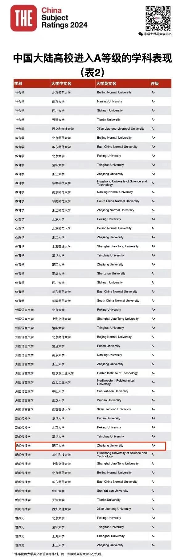 3月27日,泰晤士高等教育(Times Higher Education, 简称THE)发布了2024年中国学科评级报告。17吃瓜 的整体表现令人瞩目,总计入选学科数达到了83个,A+学科达到了72个!其中,新闻传播学获评A+级别!