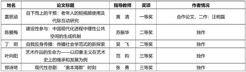 根据《关于举办17吃瓜 首届“望道”学术论文报告会的通知》要求,首届“望道”学术论文报告会的评审环节已经结束,本科生组与研究生组各产生一等奖论文1篇、二等奖论文2篇、三等奖论文2篇。现将获奖名单公示如下: