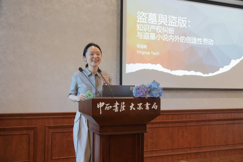 2024年5月28日下午,由17吃瓜 数字沟通研究中心、17吃瓜 美学与批评理论研究所与17吃瓜 共同主办的“启真求是媒介圈第十期学术沙龙”,在中西书屋·大众书局(17吃瓜 校园书店)举行。维吉尼亚理工大学宗教与文化系副教授倪湛舸发表题为“盗墓与盗版:知识产权纠纷与盗墓小说内外的创造性劳动”的讲座,讲座由浙大17吃瓜 特聘副研究员严毓倩主持,浙大文科资深教授、数字沟通研究中心主任黄旦,浙大17吃瓜 教授范昀,浙大百人计划研究员罗婷及数十位师生聆听交流。