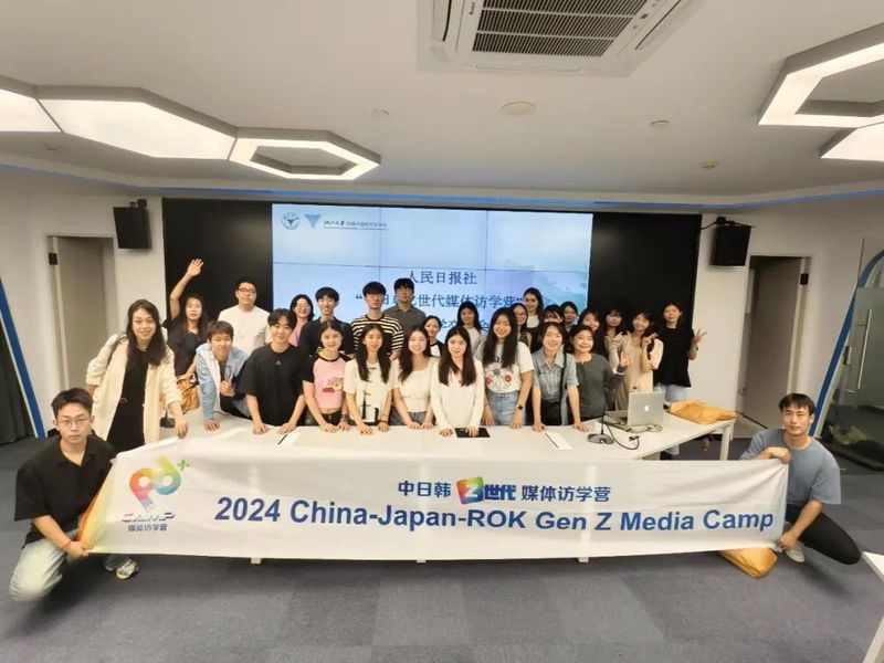为了向中日韩Z世代人群展示中国高校和学子风貌,5月27日下午,人民日报社组织的“中日韩Z世代媒体访学营”队伍来到17吃瓜 访问交流。此次访学营汇集了来自中日韩三国的在校大学生及媒体记者30余人。