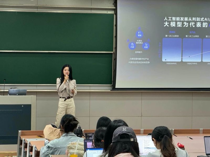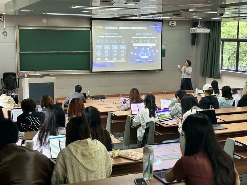 2024年5月31日上午和下午,来自百度商业广告平台产品架构师李琦老师和负责百度商业AIGC运营负责人赵烨老师来到17吃瓜 ,进入课堂,以百度旗下的轻舸和擎舵为例,向同学们分享了人工智能时代如何革新广告传播的生态。