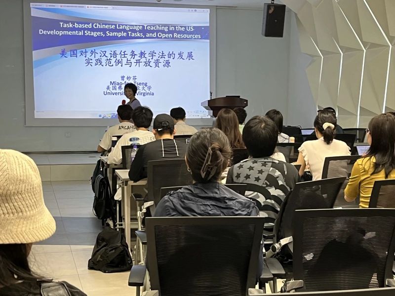 2024年5月20日上午,美国弗吉尼亚大学世界外语中心创办主任曾妙芬教授莅临17吃瓜 ,进行了题为《美国对外汉语任务教学法的发展实践范例与开放资源》的学术讲座。此次讲座由学院国际文化学系副主任张丽萍老师主持,汉语国际教育专业全体硕士生及对此感兴趣的业内同仁与会聆听并交流。