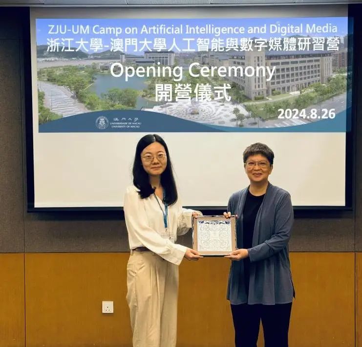 师生的热烈欢迎,并强调了两校之间深厚的友谊。她提到,此次研习营不仅是一次学术交流的机会,更是一次文化探索和个人成长的旅程。孙梦如老师在开营仪式上发表了讲话,她鼓励学生们积极融入澳门的文化环境,通过实践活动深入了解数字传播的现状与挑战。仪式的最后,两校老师进行了校礼交换,象征着双方友谊的深化和合作的持续。