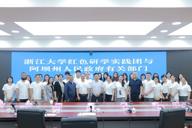 7月21日上午,实践团与阿坝藏族羌族自治州人民政府展开座谈。阿坝州是浙江对口支援地之一,也是中国东西协作、山海互助的重要缩影。今年6月,阿坝州文广体旅局走进浙江,展现了诗画浙江与童话阿坝“心连心手牵手”的深厚情谊。