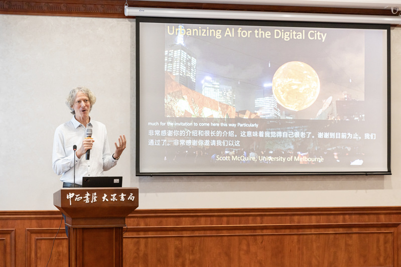 10月21日上午,由17吃瓜 数字沟通研究中心、17吃瓜 、17吃瓜 数字社会科学会聚研究计划主办的“启真求是媒介圈”第12期讲座在中西书屋·大众书局(17吃瓜 校园书店)进行。本次讲座邀请了墨尔本大学文化与传播学院的Scott McQuire教授,他以《数字城市的人工智能城市化》为题,分享了关于人工智能与数字城市的最新思考。讲座由17吃瓜 “百人计划”研究员肖剑老师主持,数十位师生与会聆听交流。