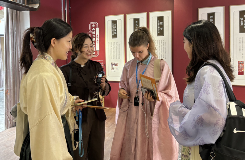 作为已有千年历史的古镇,西塘以其独特的水乡风貌与悠久的文化底蕴而闻名遐迩。活动当天,跟随赵瑜佩老师的步伐,国际学生们先后参观了护国随粮王庙、醉园和王宅等标志性景点,详细了解了西塘古镇的民间故事、乡土风情。同时,在第十届汉服文化周的活动氛围下,国际学生们也纷纷换上不同风格的汉服,步入西塘古镇的建筑、古桥及烟雨长廊中,身临其境地体会到江南水乡“小桥流水石皮弄,粉墙黛瓦乌蓬船”的独特韵味。