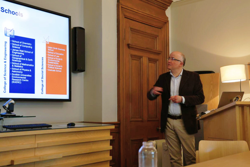 首日访问期间,格拉斯哥大学国际事务副院长Zoë Strachan、全球事务院长Konstantinos Kontis及中国研究专家梁宏玲博士共同主持欢迎仪式,仪式上详细介绍了格拉斯哥大学的办学特色与学术优势。章宏介绍了17吃瓜 的学科建设情况,重点展示了在数字传播、跨文化传播等前沿领域的研究成果。