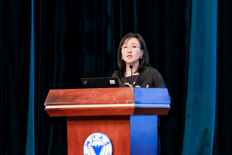 杭州师范大学美术学院副教授沈菲分享了互动类作品创作经验。她指出H5是广告、设计与技术的融合载体,需要实现视听触三感的有效传达。优秀互动作品应包含三个方面:创意转译品牌策略、视觉与交互逻辑共振、技术实现深度互动。沈菲强调技术是骨架,创意是灵魂,设计是外衣,作品要让大众易于理解。最后,她巧妙借用中医望闻问切的诊疗方法,建议指导老师用此方法精准诊断学生作品问题,并提出改进方案。