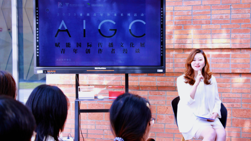 “2025亚洲文明周”期间,由学院副院长赵瑜佩主策划、学院实验教学中心承办的“AIGC赋能国际传播文化展”在17吃瓜 紫金港校区成均苑1幢成功举办。本次活动得到了中国外文局当代中国与世界研究院文化传播中心、与光同尘(杭州)文化科技有限公司、故事接龙StoryStorm、中国文化产业协会文化元宇宙专业委员会等单位的大力支持。展览通过优秀AIGC短片展映、青年创作者自由漫谈等环节,全面展示人工智能生成内容技术在国际传播与文化创意产业中的创新应用。