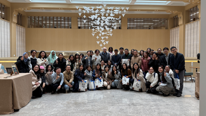 On 3 December, the opening ceremony for ‘Seeing Characters as Seeing the Person—Zhejiang University Student Chinese Character Creation Exhibition’ took place in the READ Space on the second floor of Zhejiang University Library. The exhibition was jointly initiated by the undergraduate course ‘Chinese Characters and Chinese Culture’ (lecturers: Zhang Liping and Gong Junji) and the postgraduate course "Research on Vocabulary Teaching and Acquisition in Chinese as a Second Language" (led by Gong Junji). Jointly organised by the School of Media and International Culture and the Zhejiang University Library, and co-hosted by the Department of International Cultural Studies, the Institute of Social Thought and International Culture, and the Institute of Aesthetics and Critical Theory, the exhibition showcases creative Chinese character works by 166 students from China and abroad. The opening ceremony was attended by Mr Bernard Le Sain, renowned French sinologist, former Chief Inspector of Chinese Language for the French Ministry of National Education, and Professor at the National Institute for Oriental Languages and Civilisations; Mr Wang Jue, Researcher at the University of Geneva; and Ms Wang Yuan, Secretary of the Party Committee of Zhejiang University Library.